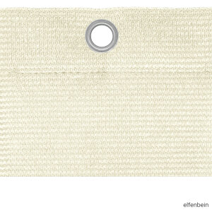 Unsere farbige Zaunblende wird aus hochwertigem PE-Bändchengewebe mit Schattierwerten von 69 % bis 97 % (je nach Farbe) und einem Flächengewicht von 230 g/m² individuell nach Ihren Maßvorgaben gefertigt. Die Blende ist trotz des angenehm leichten Flächengewichtes sehr reißfest (Kette 475 N/5 cm, Schuß 1500 N/5 cm) und strapazierfähig. Das Netz wird rundum gesäumt und im Abstand von ca. 40-50 cm mit Rundösen (Stahl/verzinkt, Innen-Ø 16 mm) geöst. Damit ist eine leichte Befestigung am Zaun oder anderem Trägersystem garantiert.