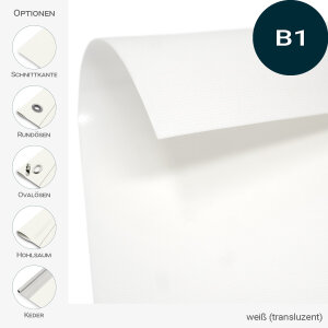 Diese lichtdurchlässigen, jedoch nicht durchsichtigen (transluzenten) Planenstoffe sind verschiedenen Pastelltönen erhältlich. Die hochglänzenden und transluzenten Planen bestehen aus einem beidseitig mit PVC beschichtetem hochfesten Polyestergewebe, sind fungizid behandelt und zusätzlich schwer brennbar nach EN 13501-1 klassifiziert. Mit einem Gewebegewicht von 690 g/m² sind sie etwas schwerer und reißfester als unsere Standard-PVC-Planen mit 650 g/m².