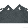 - Die Abdeckung wird rundum gesäumt (Saumbreite ca. 7 cm) und im Abstand von ca. 40 cm geöst (Rundösen, Stahl/verzinkt, Innen-Ø 16 mm).